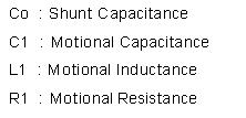 下圖就是將石英晶體共振子轉(zhuǎn)換成振蕩頻率附近的Butterworth-Van Dyke (BVD)等效電路. 在這個圖中, 有四個主要參數(shù) : 靜態(tài)電容-Co, 動態(tài)電容-C1, 動態(tài)電感-L1及動態(tài)電阻-R1.