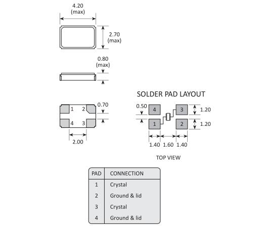 (2) 在設(shè)計(jì)時(shí)請(qǐng)參考相應(yīng)的推薦封裝.Golledge晶振,貼片晶振,GSX-431晶振