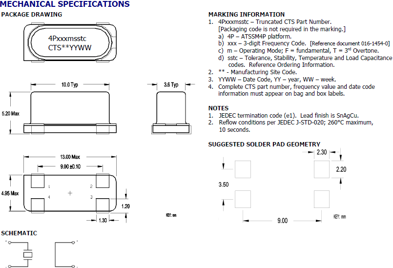 CTS晶振,貼片晶振,ATS-ATSSM4P晶振,歐美無源晶振普通貼片石英晶振外觀使用金屬材料封裝的,具有高穩(wěn)定性,高可靠性的石英晶體諧振器,晶振外觀本身使用金屬封裝,充分的密封性能,可確保其高可靠性,采用編帶包裝,外包裝采用朔膠盤,可在自動(dòng)貼片機(jī)上對應(yīng)自動(dòng)貼裝等優(yōu)勢。