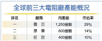 此次即將調(diào)漲的國(guó)巨是繼旺詮在1月宣布漲價(jià)后,2021年第二家針對(duì)代理商調(diào)漲的電阻廠商.資料顯示,旺詮為全球第三大芯片電阻廠,為奇力新下屬公司.旺詮產(chǎn)能分布在東莞及馬來西亞,目前月產(chǎn)能約360億顆.此前,旺詮科技在給客戶的通知函中表示,由于各項(xiàng)原材料價(jià)格上漲,訂單出貨比將近4倍之下,針對(duì)大中華區(qū)代理商調(diào)漲厚膜電阻價(jià)格15%,新價(jià)格于2月17日生效. 中時(shí)電子報(bào)稱,此次國(guó)巨漲價(jià),除了原材料如陶瓷基板、油墨、包材價(jià)格全面起漲之外,還受到另一家中國(guó)臺(tái)灣的電阻大廠產(chǎn)量銳減的情況持續(xù)惡化影響.該廠芯片電阻月產(chǎn)高達(dá)600億顆,產(chǎn)能排名高居全球第二,且近年擴(kuò)了不少小尺寸電阻產(chǎn)能.而2020年末,該廠發(fā)生"家變",產(chǎn)量銳減50%.