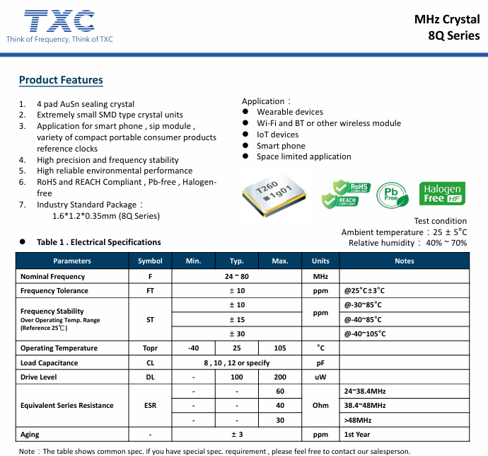 當(dāng)智能手機(jī)流暢運(yùn)行、可穿戴設(shè)備精準(zhǔn)監(jiān)測、物聯(lián)網(wǎng)設(shè)備互聯(lián)互通時(shí),很少有人會(huì)留意那顆藏于機(jī)身深處的“時(shí)間心臟”臺(tái)灣晶技晶振.臺(tái)灣TXC晶技推出的8Q26000008晶振,以1.6*1.2*0.35mm的方寸之軀,承載著高精度頻率控制的核心使命,堪稱小型化科技浪潮中的匠心典范.