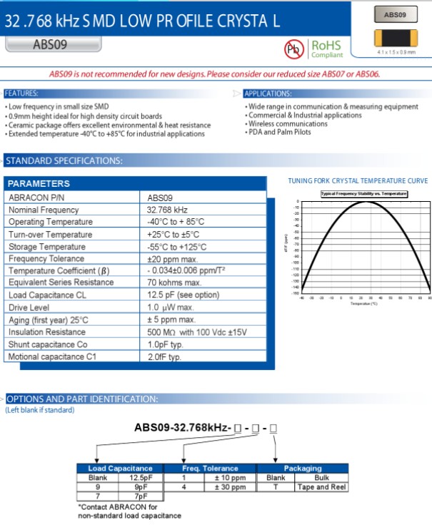 | ABS09-32.768KHZ-7-T | Abracon晶振 | ABS09 | kHz Crystal (Tuning Fork) | 32.768kHz | 2-SMD, No Lead |
