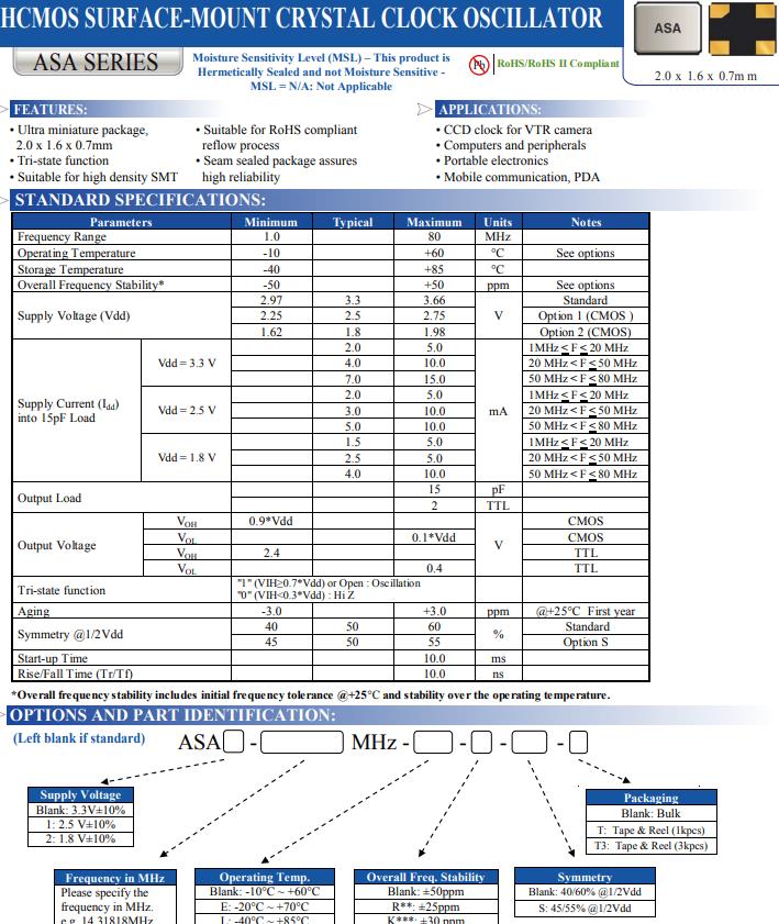 | ASA-60.000MHZ-L-T | Abracon晶振 | ASA | XO (Standard) | 60MHz | 3.3V | -40°C ~ 85°C |