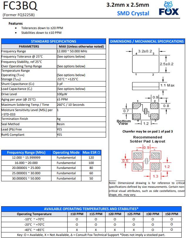 | FQ3225B-25.000 | FOX晶振 | FQ3225B | MHz Crystal | 25MHz | ±50ppm |