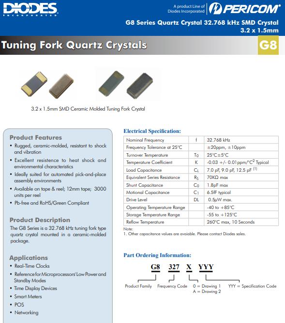 | G83270022 | Diodes晶振 | SaRonix-eCera™ G8 | 32.768kHz | - | 2-SMD, No Lead |