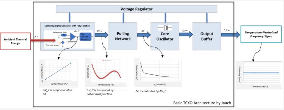 在下文中,將通過仔細(xì)研究TCXO的基本架構(gòu)來詳細(xì)解釋TCXO的功能.通常,TCXO由五個(gè)功能塊組成(圖2),