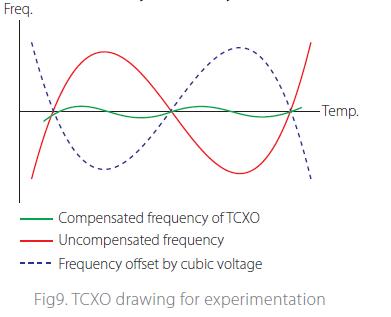 影響頻率穩(wěn)定性的最大因素是溫度特性.在溫度補償電路的幫助下,該振蕩器實現(xiàn)了溫度特性的高穩(wěn)定化.由于采用了指定的溫度補償電壓,振蕩器可以輸出更穩(wěn)定的頻率與環(huán)境溫度.主要用于移動通信設備頻率合成器的標準振蕩器.PDC(個人數(shù)字蜂窩)、GSM(全球移動通信系統(tǒng))、GPS(全球定位系統(tǒng))等要求的+ / -2.5ppm最大溫度穩(wěn)定性高頻率.這樣的要求不能滿足于切割晶體單元.此外,不同晶體單元在溫度特性上存在著細微的差別.因此,需要對溫度補償電路進行補償以獲得較高的溫度穩(wěn)定性.