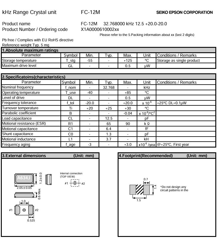 更多>>X1A000061000200 FC-12M 32.768K 12.5PF 20PP愛普生小體積表晶