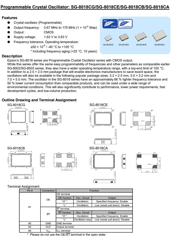 | X1G005571018300 | SG-8018CA | 170.000000 MHz | 7.00 x 5.00 x 1.40 mm | CMOS | 1.620 to 3.630 V | -40 to 105 °C |