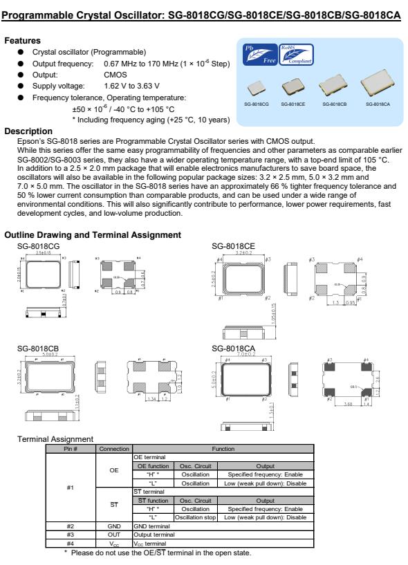 隨著快速發(fā)展的互聯(lián)網(wǎng),愛普生公司快速推出了SG-8018CG晶振,編碼X1G005601049500,1.62-3.63 V有源晶振,愛普生的SG-8018系列是可編程晶體振蕩器系列CMOS輸出。這個(gè)系列提供了頻率和其他參數(shù)的可編程性,SG-8002/SG-8003系列,它們也具有更廣泛的工作溫度范圍,最高極限為105°C。除了2.5 × 2.0 mm的封裝,將使電子制造商節(jié)省板空間,該振蕩器也將在以下流行的封裝尺寸:3.2 × 2.5 mm, 5.0 × 3.2 mm和7.0 × 5.0 mm。SG-8018系列振蕩器的頻率容忍度約為66%比同類產(chǎn)品低50%的電流消耗,適用范圍廣環(huán)境條件。這也將大大有助于性能,更低的功率要求,快速開發(fā)周期和低量生產(chǎn)。