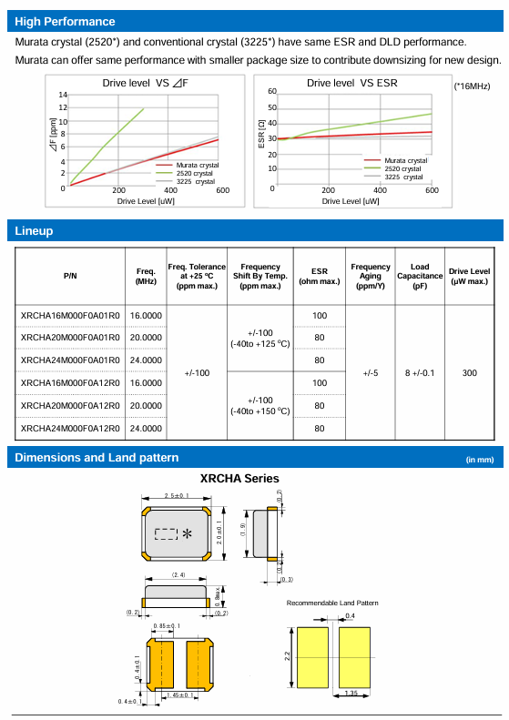 更多>>XRCHA16M000F0A12R0日本村田車規(guī)晶振2520 16M 8PF